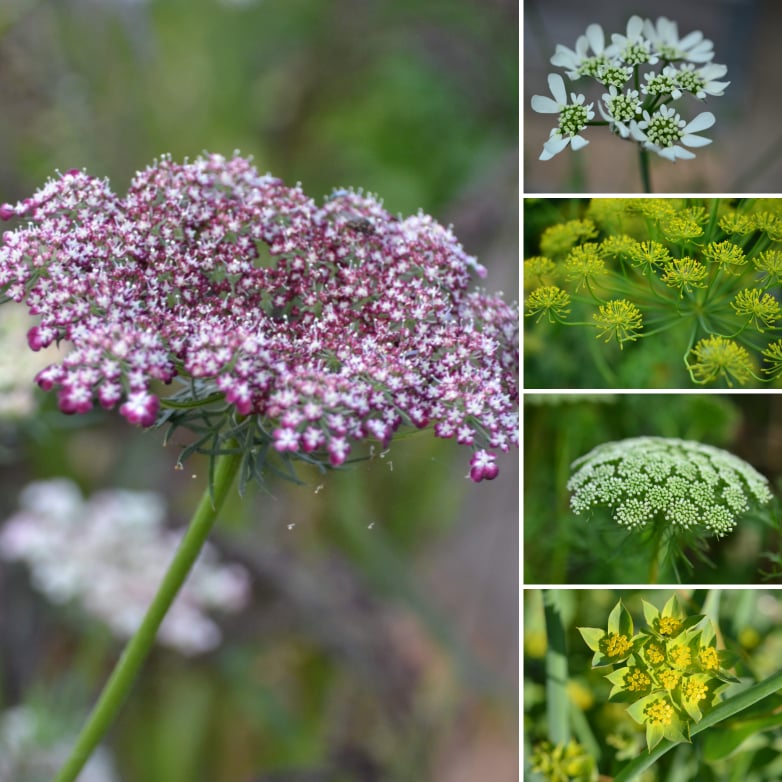 Prydgulerod, Blomsterkørvel, Skærmdild, Tandstikkerurt og Hareøre.