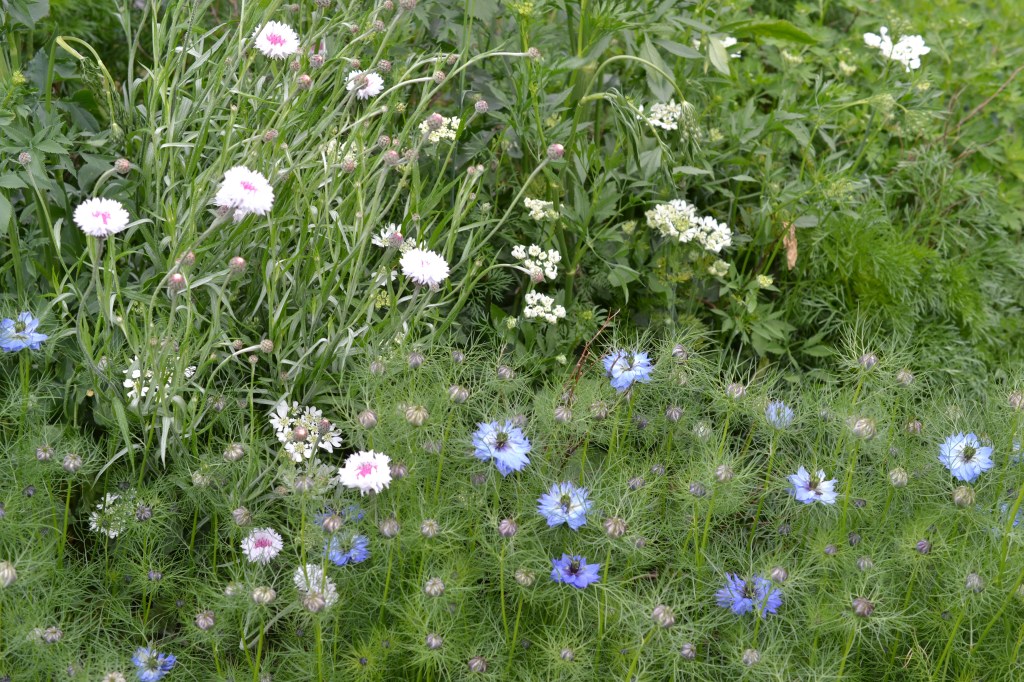 Derudover sår jeg nærmest aldrig Morgenfrue, kinesisk hundetunge (den blå, den lyserøde virker mere sart), Jomfru i det grønne og dusksalvie. De kommer helt af sig selv, da de selvsår år efter år. Dem luger jeg op hvis de er i vejen og ellers får de lov til at komme lidt rundt omkring.