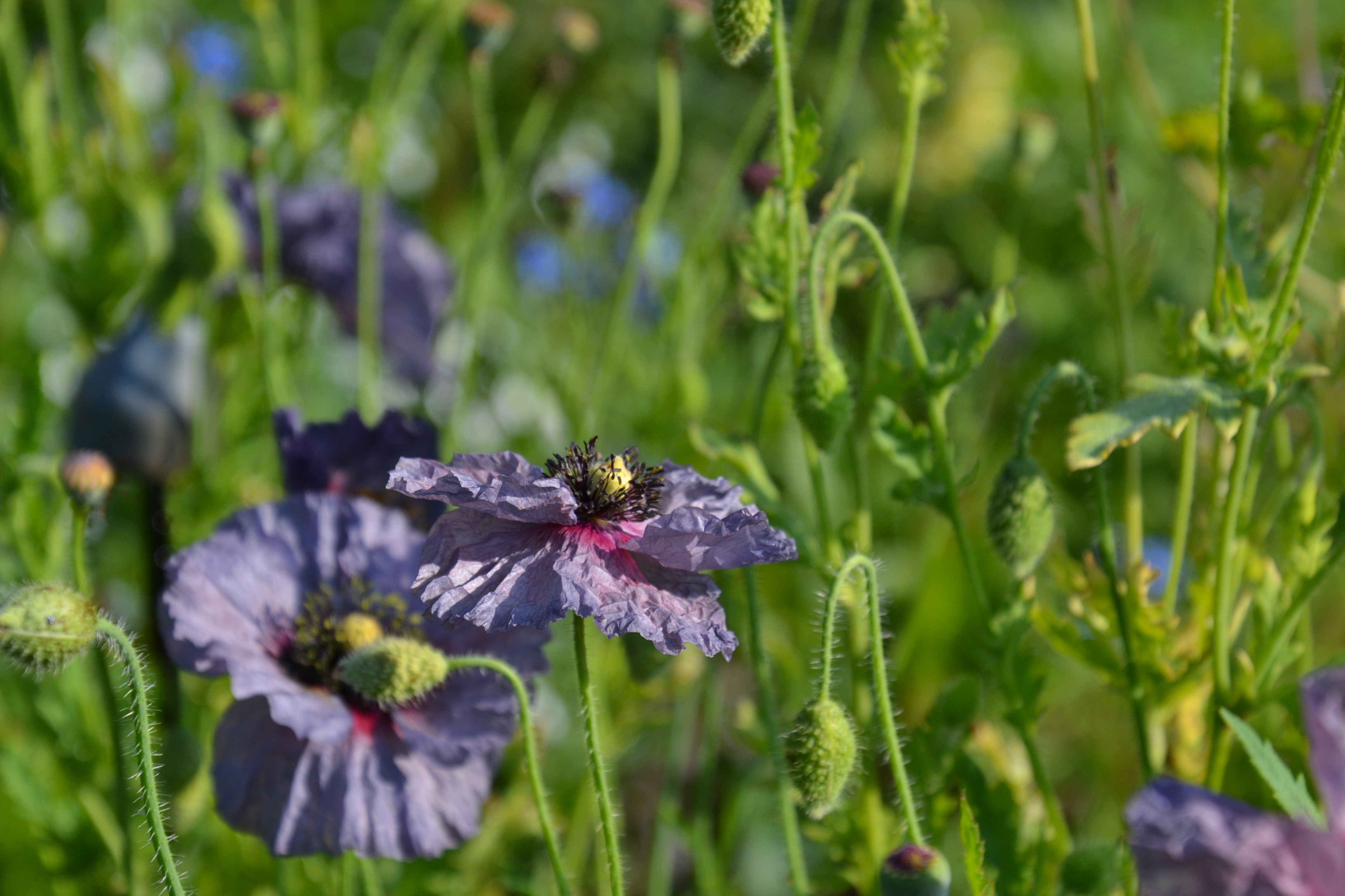 Jeg er vild med den lille violjernurt, selvom det faktisk aldrig er lykkedes mig at dyrke den. Jeg har sået den flere gange, men endnu uden resultat, så i 2025 satser jeg på at det lykkes. Kornvalmuen ‘Amazing Grey’ dyrker jeg hvert år, jeg synes den er noget af det mest fantastiske i sin elegante grå-lilla farve. Den har dog sået sig selv i et andet bed, så overlever den vinteren, laver jeg nok lidt om på mine planer, den har pælerod og er derfor ikke så glad for at blive flyttet rundt på.