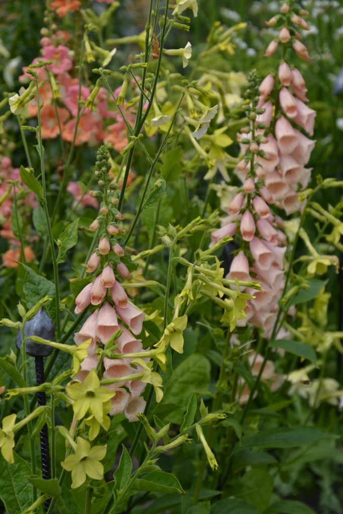 I de to forreste bede, dem der lægger i forlængelsen af shelteren, skal der nærmest være det samme som i år, fordi det fungerede super godt. Her er det de pastelfarvede Dahlia, der sammen med Cosmos og prydtobak i lyse farver, præger udtrykket. Sidste år havde tandstikkerurt selvsået sig midt i hele herligheden og det så vidunderligt ud, så det gør jeg igen. Jeg vil også gentage successen med den blomstrende kant, som du kan læse opskriften på her. I år lykkedes det at sætte Dahlia med lidt mere afstand og dermed få plads til en masse smukke Cosmos sammen med dem, det vil jeg gøre igen. I dette bed havde jeg også et klatrestativ med klatreplanter blandt andet den yndige pralbønne ‘Sunset’, det var ret så fint, så måske gør jeg det igen. Jeg har dog købt lidt nye Dahlia, så måske bliver det alligevel en anden løsning for at få plads til dem, det må tiden vise.