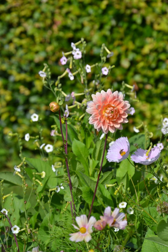 Dahliabede i pastelfarver med masser af selskabsplanter