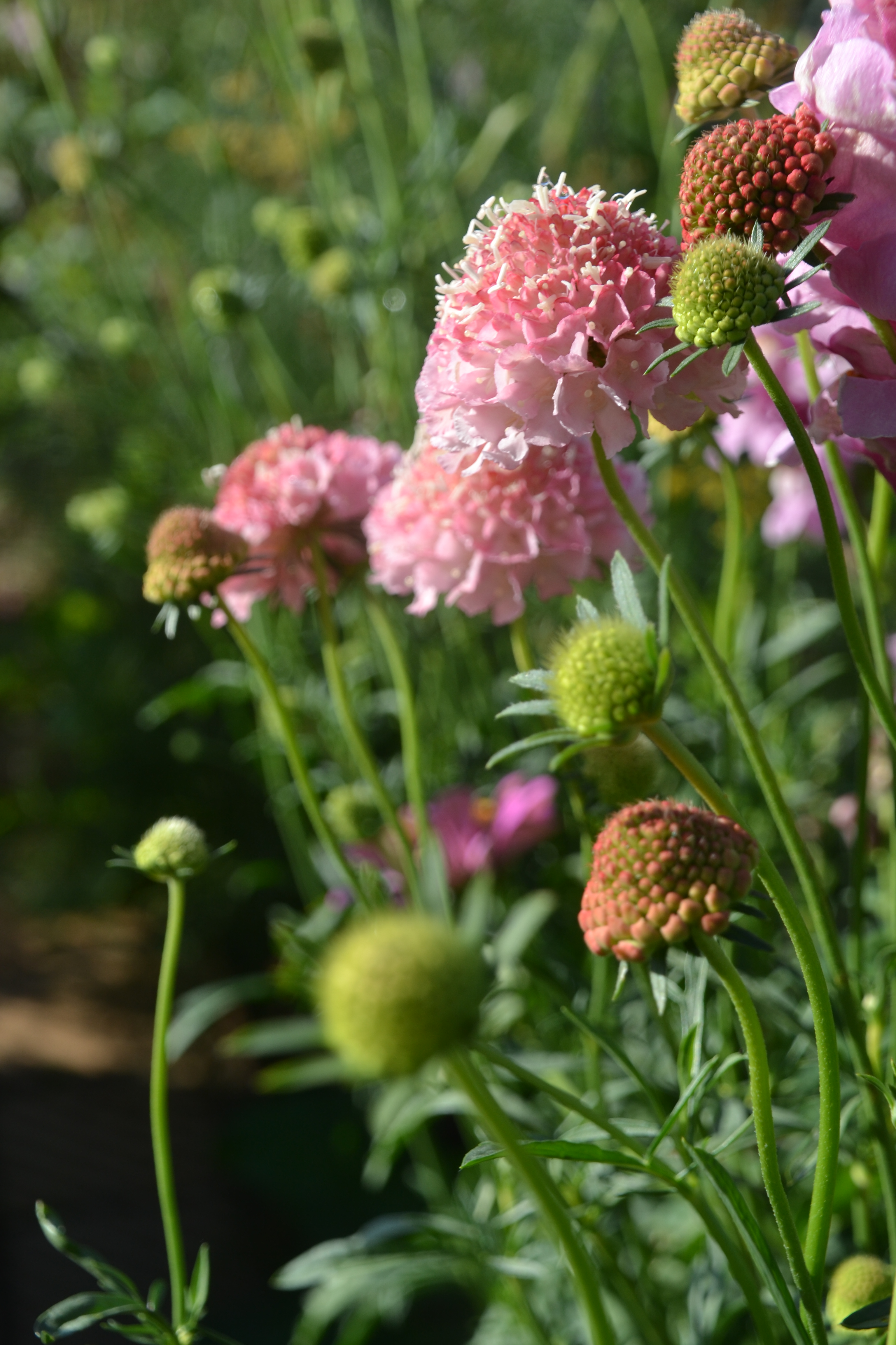 Statice tataricum er ny for mig, jeg har en anden staude-statice og den er helt vidunderlig, så jeg håber lidt at denne er det samme, på produktbillederne ser den ret fantastisk ud, så jeg håber på det bedste. “snow on the mountain” har jeg dyrket før, den er fantastisk som fyldplante i buketter sådan lidt hen på efteråret, hvor meget andet fyld forlængst er færdigt. Den har smukke hvide tegninger i de grønne højblade, jeg har tidligere dyrket den under mine solsikker, efter ranunkler – den lidt kummerlige placering har den lidt under, så nu har jeg besluttet at den skal have en bedre plads i år. Spydverbena har jeg tidligere haft i lilla i haven, men den er efterhånden blevet væk, nu glæder jeg mig til at få den hvide variant. Jeg skal huske at så den tidligt, da verbena udvikler sig meget langsomt. Papirknob har jeg holdt pause fra i et par år, men nu har jeg lyst til at dyrke den igen, ikke mindst fordi den ofte kan plukkes helt til november – hvilket jo er helt fantastisk. Plukkes blomsten i knop ligner den en lille perlemorsperle, plukkes den udspunget ses den gule midte, som bierne elsker. Når jeg har holdt pause fra den er det mest fordi selve planten ikke er særligt elegant – jeg blev lidt træt af at se på den grove plante. kaukasisk skabiose er en af de smukkeste skabioser til buketter fordi den har store men enormt yndige blomster. Den er flerårig og jeg har da også haft den i haven tidligere, men de er med årene gået til, jeg tror ikke de brød sig om plantetætheden i mine staudebede – de planter jeg forærede til min mor, lever endnu, så de behøver ikke være kortlivede.