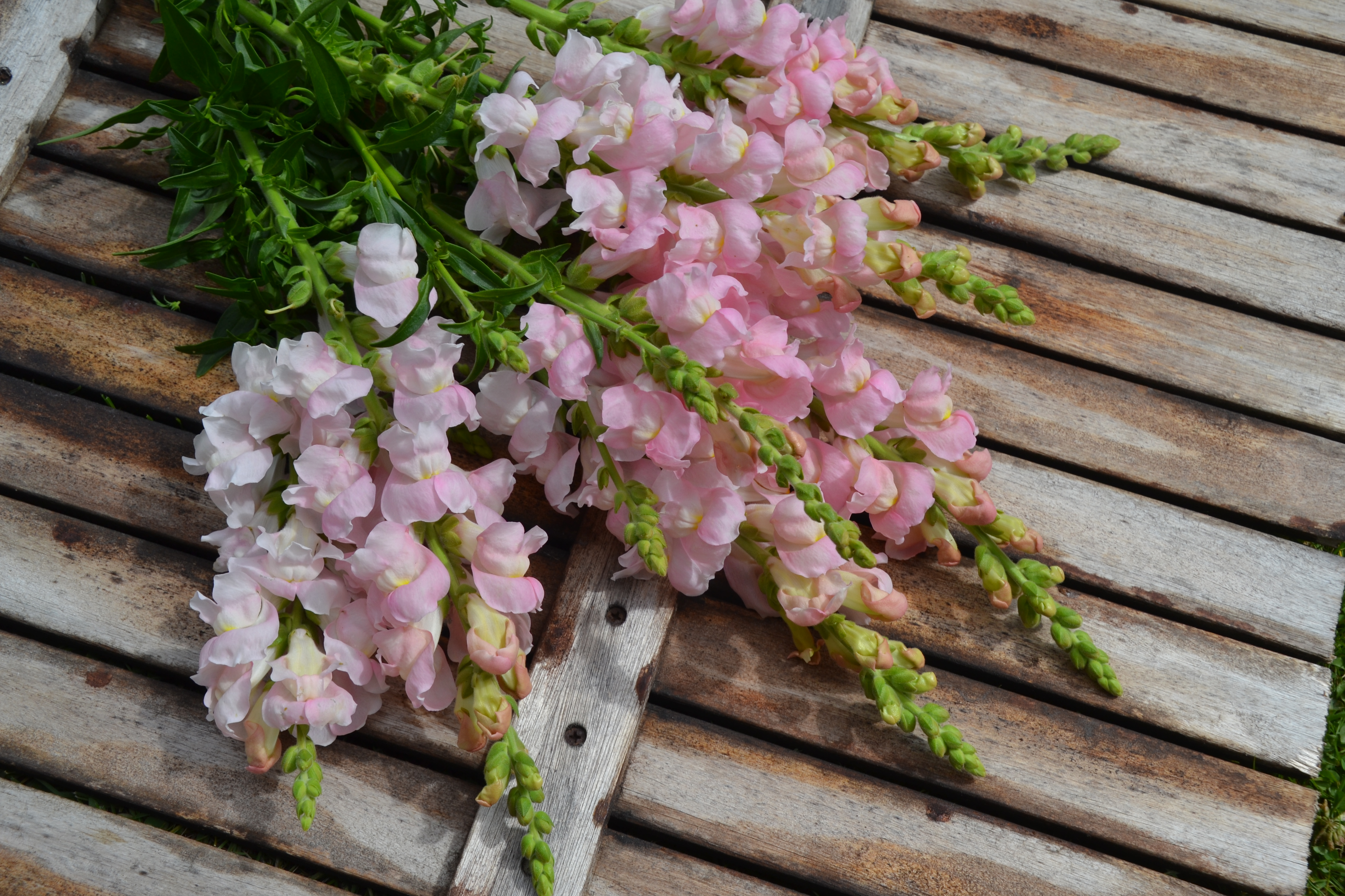 I år kommer jeg til at dyrke mange Løvemund. Jeg synes virkelig det er en blomst der kan noget i buketter og samtidig kan de høstes i en meget lang sæson. Hvor den første høst giver de længste og flotteste stilke, vil der helt til forsten være mindre sideskud at høste af, som bestemt også kan bruges i buketter. Nogle sorter er bedre til at give flotte stængler i en lang sæson, her er jeg glad for ‘Potomac-serien’ imens fx. ‘Chantilly-serien’ er tidlig, men ikke har ret meget at byde på til buketter sidst på sæsonen. Løvemund er meget hårdføre og kan plantes ud allerede omkring sidste frost, så derfor er de også gode at dyrke for en lidt utålmodig sjæl, som mig.