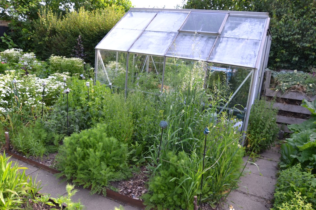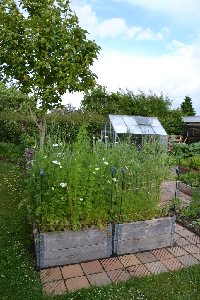 Det var et vidunderligt syn i de få uger hvor det hele stod grønt og frodigt. Jeg må konstatere at arealet var for stort i forhold til mit behov og at alt var plukkeklar indenfor de samme få uger.