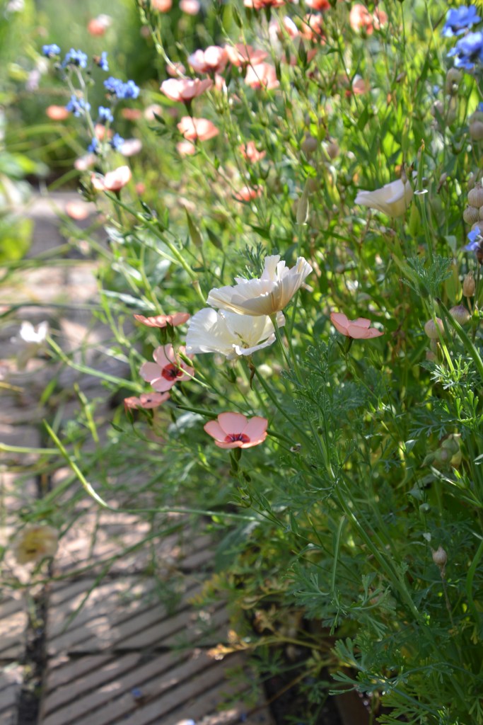 Jeg var bedre til at få sået på tomme pladser i løbet af sæsonen og fik dermed høstet to hold blomster fra en del af mine bede. Jeg brugte primært alm. Hør og jomfru i det grønne som andet hold. De udvikler sig hurtigt og er dermed ideelle at så selvom vi er nået et godt stykke ind i sommeren.