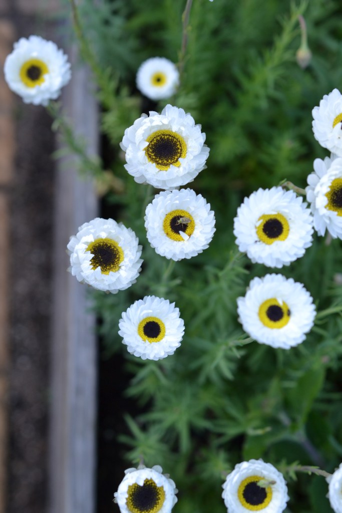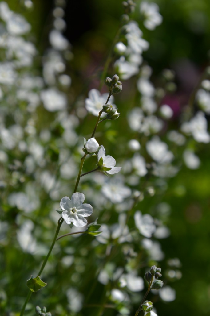 Jeg ved ikke hvorfor der igen i år sniger sig et helt bed ind med hvide blomster. Men på listen over “must-grow” var så mange hvide blomster i år, at det blev til et helt højbed.