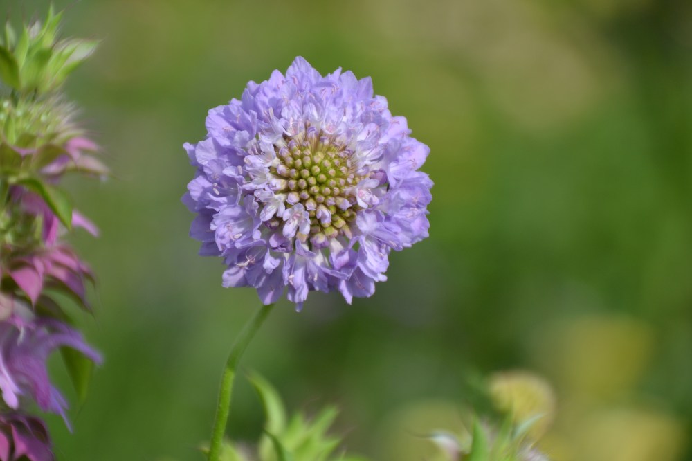 Der er den fuldstændigt fantastiske Enkeblomst ‘ Oxford Blue’, smuk i både knop, blomst og frø. Blomstrer fra juni til frost. Altid omsværmet af sommerfugle – Hvordan kan man andet end at elske den?