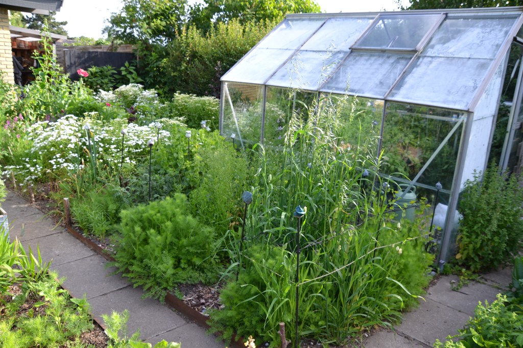 Ligesom i det forgangne år, forventer jeg at bruge bedet foran drivhuset til en form for “buketfyldsbuffet” – altså et sted hvor jeg primært dyrker alt det grønne, som fylder smukt ud i en buket, både græsser, frøstande og planter med grønne blomster. Jeg ved endnu ikke hvordan jeg organiserer det i år, da min plan er at så mindre områder med jævne mellemrum, frem for at så det hele samtidig, for at undgå en kæmpe høst i juni og intet at høste derefter. Jeg går i tænkeboks og satser på at finde en løsning inden de første frø skal i jorden.