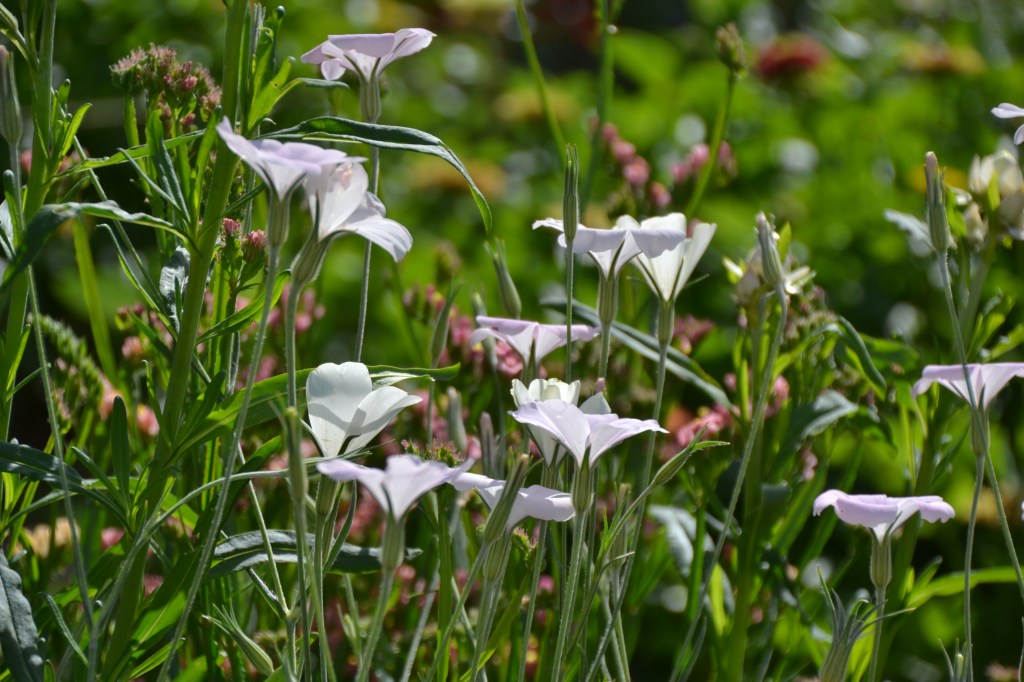 Jeg har én plads som jeg ikke helt har besluttet mig for om skal indeholde den dejlige ko-nellike i hvid eller den smukke lille sommerkærminde med det skønne sortsnavn ‘Little Snow White’. Ko-nellike har en relativt kort sæson, men da naboplanterne i form af sommerfloks og enkeblomst fortsætter deres blomstring helt til frost, skal det hul der kunne opstå, hurtigt blive fyldt ud. Sommerkærminde er ret lav, så bliver det den skal rækkefølgen i bedet nok ændres lidt, så de får en ydreplads hvor de ikke skygges væk af naboplanter.